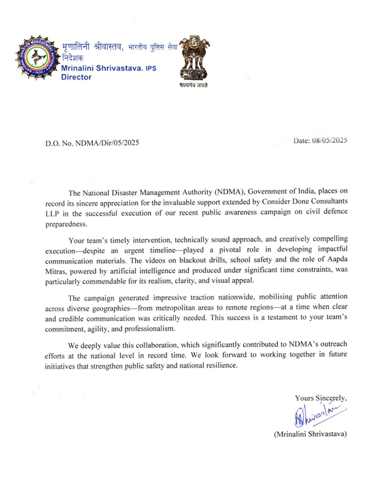 ● Official recognition from NDMA commending our team’s speed, realism, and technical precision under severe time pressure.